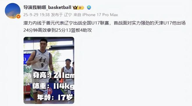 当球迷朋友们都在为辽宁队着急的时候,于善元这个名字出现在了大家的视野中,18岁,身高2米11,辽宁名宿于学鹏之子。U17全国联赛首秀,于善元24分钟爆砍25分13篮板4助攻,这样的表现在青年赛场上,算得上“怪物一级”的存在,。更关键的是,他早早被辽宁一队重点考察,夏训名单里赫然有他的名字。当然了,U17联赛和CBA毕竟不是一个量级。真的指望他现在就可以加入辽宁队,扛起内线的大旗,显然也是不可能的,CBA那些内线老炮,哪个不是打了十年八年才站稳脚跟?对于年轻球员来说,需要时间、需要环境,更需要系统培养。CBA的对抗强度和压力,绝对不是青年联赛能模拟出来的。锻炼几年之后,他也许会成为下一个韩德君,为辽宁的内线撑起一片天,但绝对不是现在。