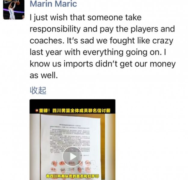 四川男篮“血书门”后续:外援马里奇发声讨薪所有外援也被欠薪