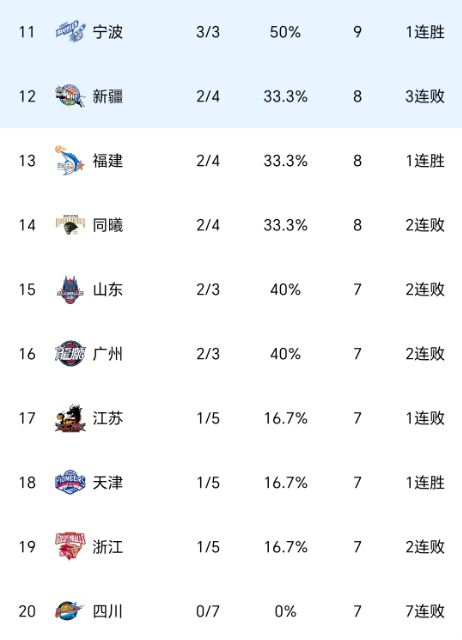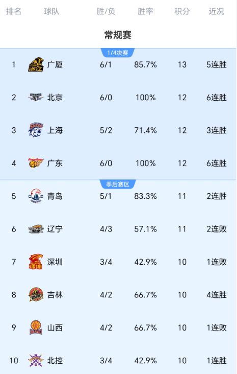 赛后数据统计,辽宁队只有三人得分上双,包括付豪33分4板1助、布朗22分1板2助、威尔斯18分7板5助,其他队员的得分最多只有4分,就是鄢手骐3分、莫兰德1分,另外姜宇星0分,王岚嵚0分,张陈治锋0分,吴昌泽0分,俞泽辰0分,奥利弗0分。关于最新积分榜排名,也是有了变化: