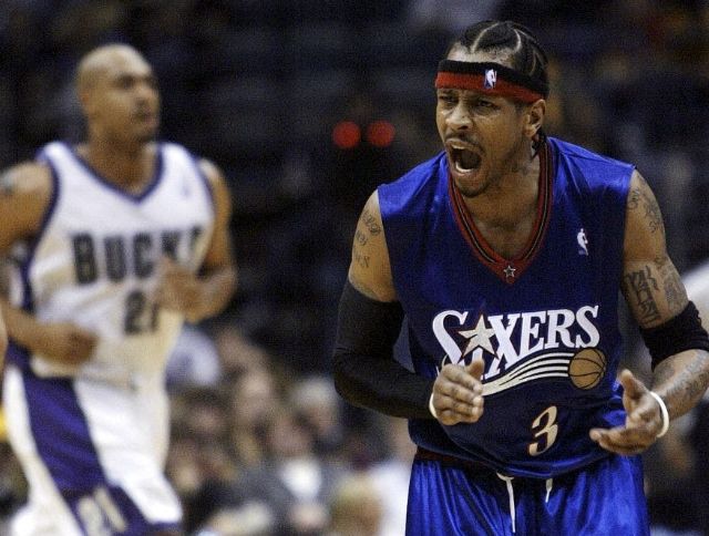 放眼NBA历史长河,有过很多超级天才,上古神兽张伯伦,天生英雄的迈克尔·乔丹、飞天遁地的詹姆斯,还有罗德曼之流的怪才等等.但如果说有一位球员,能够吸引一群铁杆粉丝,甚至形成一个特殊的文化圈子,那么艾弗森绝对是其中相当特殊的一个名字。作为一位爱恨交织的球员,有人认为他哗众取宠、球风自我霸道,是NBA的负面标签;但在支持者眼中,艾弗森是桀骜不驯的励志传奇,丝毫不逊色于历史上的任何超级球星。一个身高仅183的少年,他的一生几乎都是在和艰难环境对抗。幼年出生于单亲家庭,成长在黑白对立分明的汉普顿,周围朋友和亲人频繁出入警局和监狱。而黑暗环境也让艾弗森早早接触到社会另一面,但好在他把更多时间放在了运动项目上。高中时期的他是篮球和橄榄球双栖明星,先后作为四分卫和控卫带领两队拿下州冠军,但在光明之外,阴影总是并存。1993年2月,艾弗森因斗殴事件被捕,被指控伤人,好在最高法院和全国有色人种协进会介入后,他仅入狱四个月获得假释。也正是这段经历,让艾弗森学会了面对任何对手都无所畏惧的态度,早早埋下了日后的战神心态。出狱之后,艾弗森选择篮球作为最终归宿。1994年加入乔治城大学,首年就场均贡献20.4分4.5助攻3抢断,获选联盟最佳新秀和最佳防守球员,第二年带队拿下联盟冠军,闯入NCAA八强,入选全美最佳一阵。随后高调宣布参加1996年选秀大会。而这届选秀,也被誉为史上最强之一,诞生了无数未来名人堂球星。当时的76人握有第一个签位,球队也恰好急需一位控球天赋型基石重塑球队,自然是毫不犹豫地选中了艾弗森。得到艾弗森加盟,76人立刻开始脱胎换骨。虽然早期战绩平平,但他神勇的表现迅速吸引球迷关注,连续五场得分破40分、面对公牛轰进37分、用标志crossover晃开乔丹命中中投……这些经典瞬间至今仍旧被球迷津津乐道。新秀赛季,艾弗森场均23.5分7.5助攻4.1篮板2.1抢断,顺利抢下最佳新秀。随后76人引进拉里·布朗教练,艾弗森开始转型为得分后卫,得分爆发力开始得到最大化释放。1998-99赛季,艾弗森以场均26.8分夺得得分王,带领76人打进季后赛,但可惜不敌步行者止步于第二轮。此后,76人用6年7000万续约艾弗森,建立起球队的绝对领导权。1999-00赛季,球队打出49胜33负,艾弗森首次入选全明星。看似一切在向好,但随后他和布朗教练之间因为训练态度问题而出现矛盾,得益于球队大力补强阵容,76人最终还是顺利问鼎东部第一。2000-01赛季,艾弗森再次爆发,打出场均31.1分3.8篮板4.6助攻2.5抢断,一举包揽常规赛MVP、得分王、抢断王,季后赛面对步行者、猛龙屡次上演单场50+神级表演,东决面对雄鹿带伤上阵,决胜局轰进44分晋级,总决赛对上OK湖人,首战砍下48分抢下一胜,但受限于球队战力差距,最终还是无缘冠军奖杯。之后的时间里,艾弗森的职业生涯逐渐开始呈现两面,即便他个人能力依旧出色,但球队战绩却难有起色,他和教练以及管理层之间的摩擦不断升温。伤病和矛盾之下,最终他在2006年被球队交易,结束了费城十年的辉煌故事。纵观艾弗森的NBA生涯,他确实改变了篮球世界的潮流风向。从过去高大球员主宰时代,到183的身高也能呼风唤雨。身体虽小,但爆发力、速度和坚韧心态,足以让球迷为之疯狂。而球场之外,艾弗森的穿搭也在引领着潮流文化。大裤子、辫子头、头带、复杂刺青,这些文化在当时西装笔挺的NBA属实格格不入,而正是受到他带来的街头文化冲击,甚至让NBA主席斯特恩颁布明令条款,禁止球员在官方场合穿戴街头装扮。2009年,34岁的艾弗森重返76人,虽然依旧能拿下高得分,复刻经典动作。但长期伤病和家庭问题让他无法再次全身心投入球场,最终选择主动解约。2013年,他在费城主场正式退役,隔年76人选择将他的3号球衣高挂球馆上空。就像费城播报员马克·祖莫夫所讲:“他是球场英雄,但却有许多职业球员不该有的陋习,身上同时有让人又爱又恨的特质,这就是艾弗森。”
