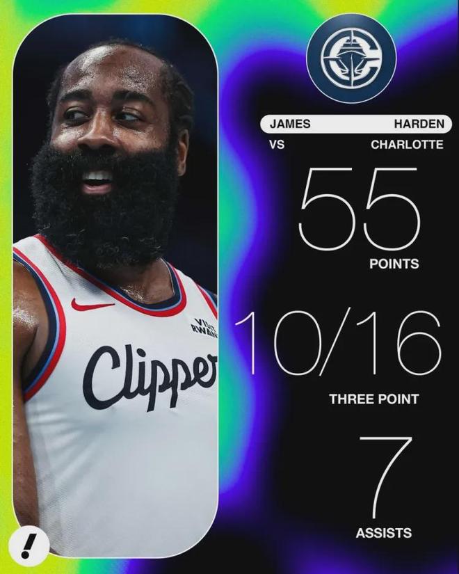挖槽!26投砸出55分!哈登快船生涯最强一战