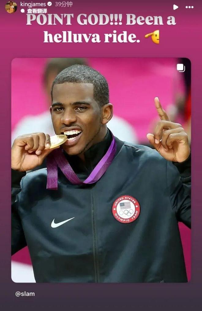 老伙计詹姆斯在个人社媒晒出保罗在08年北京奥运会咬着金牌的照片,并配文道:“控卫之神,这真是一段惊心动魄的旅程。”