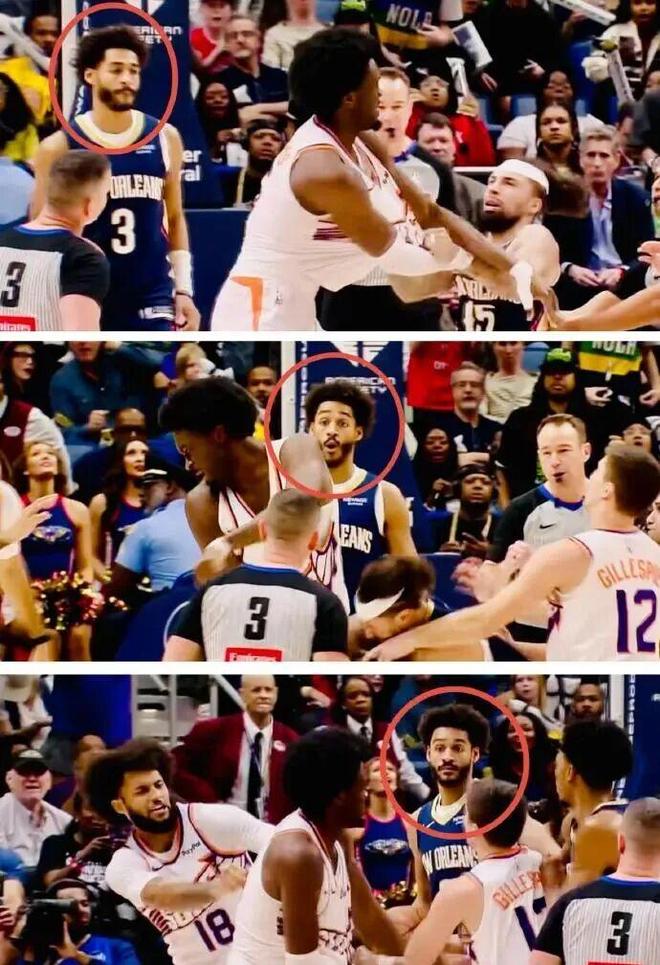 昨天鹈鹕和太阳的比赛 鹈鹕的老六 阿尔瓦拉多和马威上演了一场激情四射的拳击赛老六上勾拳直取马威面门!后者锤拳像打地鼠