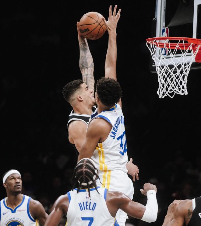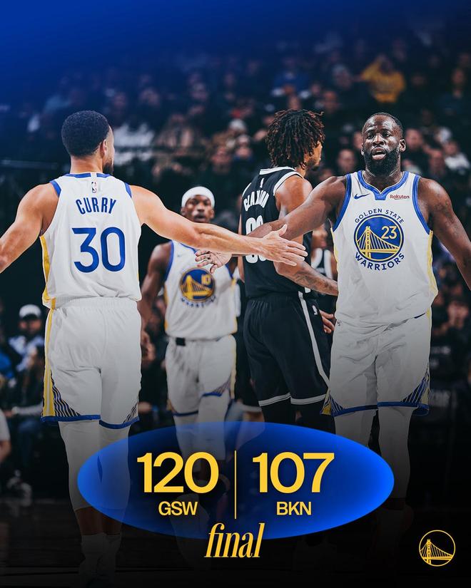 波特3罚2中,克拉克斯顿连续2次完成补扣,科尔请求暂停,曼恩2罚全中,篮网回敬8比0的攻势。库里命中2+1为勇士打破得分荒,杰明回敬三分球,格林2罚全中,梅尔顿大帽杰明的远投。巴特勒助攻梅尔顿上篮得分,理查德抢断后完成暴扣,勇士连得6分锁定胜局。科尔挑战判罚失败,克拉克斯顿2罚1中。库里2罚1中,波特上空篮不进,理查德命中2+1,比赛时间走完。最终,勇士以120比107力克对手。两队数据篮网队,杰明17中7,三分球14中7近看23分3板3助、克拉克斯顿9中7砍下了15分9板4助3断3帽,在攻防两端存在感很强。托马斯12中5得到13分2助、克洛尼8中3得到11分5板2助2断、特拉奥雷9分、曼恩4分2板4助、夏普3分5板、鲍威尔2分、沃尔夫1板2助。勇士力擒篮网