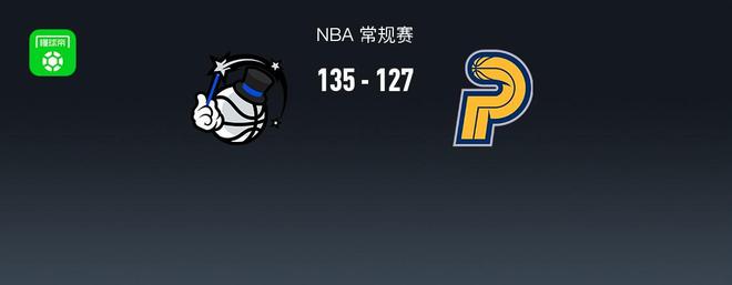 第四节魔术贝恩拿下8分,步行者西亚卡姆拿下6分,最终魔术135-127战胜步行者