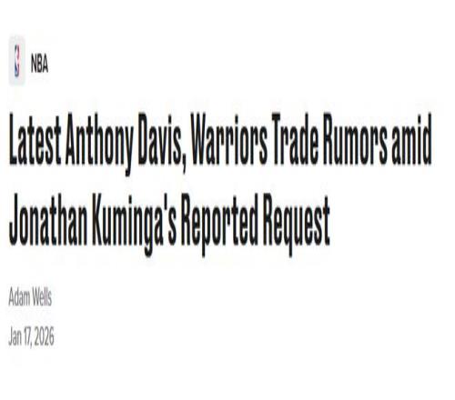 ESPN记者邦滕普斯补充道,尽管从阵容适配角度来看,戴维斯加盟勇士队会是“非常合理的选择”,但考虑到他高昂的合同成本,以及伤病带来的出场不确定性,这笔交易“如今已彻底没戏”。