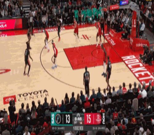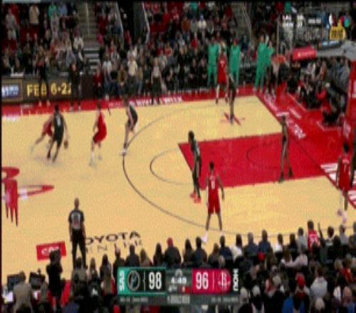 卡斯尔热身时,干脆把火箭的篮筐都扣歪了