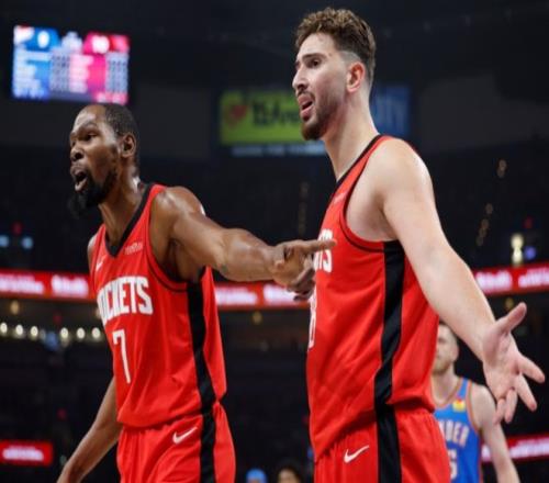 休斯顿火箭队27胜16负高居西部第4位,他们是西部前5队伍中唯一一位没有球星入选全明星首发的队伍——西部第1雷霆的SGA、西部第2马刺的文班、西部第3掘金的约基奇和西部第5湖人的东契奇均锁定一个首发名额,这多多少少有些尴尬!作为休斯顿火箭队的急先锋,死神杜兰特第一个挺身而出向全明星发起冲击。火箭过去2场背靠背打76人和活塞,杜兰特总共出战84分钟,狂轰68分+14篮板+6助攻+1抢断+2盖帽+10记三分球的豪华数据,他绝对配得上一个全明星替补席位。