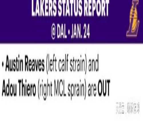 如今湖人官方更新伤病报告,客场对阵独行侠,依然只有里夫斯和蒂耶罗,还留在伤病名单当中,其他球员全部可以出战。当然湖人主帅雷迪克,在接受采访时已经透露,如果里夫斯恢复情况良好,他有望在这波连续客场征程中复出。