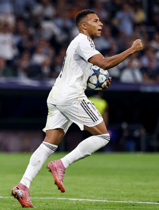 皇马全队身价为14亿欧,而凯拉特只有1273万欧,双方相差13.8亿;加上双方实力的确存在着巨大差距,皇马上半场踢得较为松散。第13分钟,维尼修斯就在左路跑出单刀,但直接挑射打偏了;第17分钟,弗兰-加西亚倒三角回传,居莱尔跟进射门被后卫挡出底线;第20分钟,居莱尔肋部直传,姆巴佩调整兜射被卡尔穆尔扎扑出。第25分钟,阿拉木图凯拉特后卫解围失误,马斯坦托诺断球趟入禁区被放倒,主裁判判罚了点球,姆巴佩轻松主罚命中,1:0!姆巴佩收获欧冠第56球,超越了托马斯-穆勒的进球数。随后维尼修斯和居莱尔的外围远射被卡尔穆尔扎化解;第44分钟,姆巴佩底线穿裆过人后兜射,皮球偏出立柱。