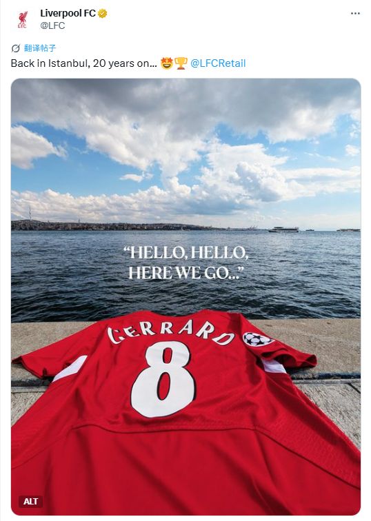 雷速体育10月1日讯 今日凌晨3:00,25/26赛季欧冠联赛阶段第2轮,利物浦将在客场挑战加拉塔萨雷。这是红军时隔20年再度来到伊斯坦布尔,赛前,利物浦官方在社交媒体上晒出了杰拉德的8号球衣,并配文“20年后重返伊斯坦布尔”。2005年的欧冠决赛,红军在这片土地上缔造了”伊斯坦布尔奇迹“。他们在上半场0-3落后AC米兰的局面下,于下半场连扳三球,并在点球大战中击败对手夺得冠军。值得一提的是,彼时红军的队长正是杰拉德。