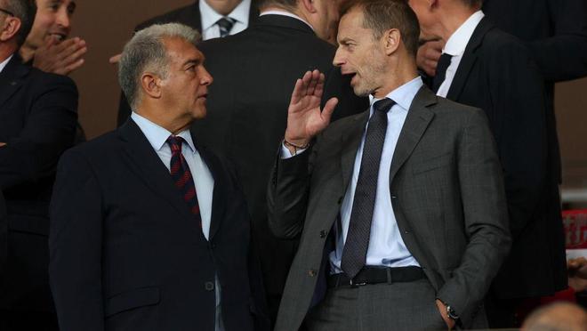 报道称,过去几年,巴萨与欧足联的关系一直紧张。矛盾的导火索可以追溯到欧洲超级联赛的创立。当时,拉波尔塔与弗洛伦蒂诺以及阿涅利一道,成为唯一坚持立场、不愿在欧足联压力下让步的三位主席。随后,争议不断延续。上赛季,拉波尔塔公开质疑欧冠裁判判罚,尤其是小组赛对阵国际米兰时裁判马尔奇尼亚克的执法,直言这些判罚“让巴萨失去了进入慕尼黑决赛的机会”。欧足联方面也曾采取强硬姿态。切费林在“内格雷拉案”曝光后,要求纪律与道德委员会介入调查。按照规定,巴萨一度有被逐出欧战的风险,最终欧足联选择等待司法判决结果。今年夏天,欧足联再次对巴萨开出重磅罚单:因违反财政公平法案,巴萨被罚款1500万欧元,若两年内未能改善财务状况,罚款金额可能升至4500万欧元。在这样的背景下,拉波尔塔与切费林的并肩出现,多少释放出和解信号。虽然切费林此行主要是出于赛事公职原因,但这是他自2021年2月以来首次到访巴塞罗那观看比赛。值得一提的是,欧足联足球事务顾问、前巴萨球星菲戈也一同出现在看台,引发不小关注。