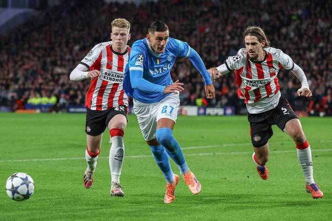 埃因霍温6-2第18分钟,萨伊瓦里越位进球被吹。第31分钟,逃过一劫的那不勒斯由斯皮纳佐拉传中助攻麦克托米奈头槌破僵。不过仅仅4分钟,埃因霍温便依靠布翁焦尔诺的乌龙球扳平比分。第38分钟,萨伊瓦里单刀破门,为埃因霍温反超比分。第54分钟,丹尼斯-曼包抄得手,为埃因霍温扩大优势。第79分钟,洛伦佐-卢克被罚下,那不勒斯少打1人。第80分钟,丹尼斯-曼梅开二度。5分钟后,麦克托米奈为那不勒斯扳回一城追至2-4。不过埃因霍温此后再进2球。6-2大胜的埃因霍温终获首胜,而那不勒斯则3轮1胜2负。