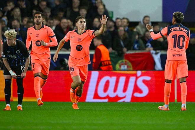 北京时间11月6日凌晨,欧冠联赛第4轮的较量继续进行,布鲁日坐镇主场,迎战巴萨。两支球队上周末的联赛都取得胜利,布鲁日迎来联赛+杯赛的3连胜,目前暂时位列比利时甲级联赛的第二位。但在欧冠层面,布鲁日的实力还是比较有限,全队的总身价只有2亿欧元,和总身价11.1亿的巴萨不可同日而语。巴萨在输给皇马后迅速调整状态,主场拿下埃尔切。对于巴萨来说,最大的困难无疑是依旧有重要球员缺阵。本场比赛,伤愈的莱万继续在替补席待命。开场只有6分钟,巴萨的造越位战术延伸到了中圈附近,布鲁日打出精彩的反越位战术,博尔赫斯高速插上后送出舒服传中,特勒索尔迪铲射破门,布鲁日意外取得领先。仅仅1分钟后,巴萨就将比分扳平,近期状态大好的费尔明送出助攻,费兰·托雷斯调整到位,冷静将球打进。两队回到同一起跑线后,巴萨攻势如潮,卡萨多兜射远角,皮球击中立柱,第11分钟,拉什福德禁区内原地起脚,同样颇具威胁。巴萨气势如虹,杀得兴起,10名球员都压过半场。第16分钟,布鲁日打出经典的快速反击,从本方禁区大脚解围到进球,全部都是一脚传球。这一次,助攻的变成了特勒索尔迪,进球的是博尔赫斯,布鲁日再次取得领先。第26分钟,亚马尔横向盘带后出其不意传球,孔德的射门被门将扑了一下,还是砸在了横梁上。接下来的20分钟,变成了巴萨的疯狂围攻,布鲁日的防线承受了不小的压力。上半场结束前,亚马尔再次送出妙传,费兰·托雷斯看到门将出击,冷静搓射,皮球稍稍偏出。费兰双手掩面,相当遗憾。上半场结束,主场作战的布鲁日2-1暂时领先。下半场开始后,两支球队不约而同加快节奏,场面相当好看,双方也在短短的5分钟内3次制造机会,两队门将都做出关键扑救。第59分钟,加西亚禁区外突施冷箭,皮球越过门将,重重砸在横梁上,巴萨上演门框帽子戏法。第61分钟,亚马尔面对多人防守,如穿花蝴蝶一般突入禁区,费尔明脚后跟助攻,亚马尔扳平比分。凭借这一进球,亚马尔以17岁118天的年龄打破了姆巴佩创造的欧冠打进7球的最年轻纪录。两队再次回到同一起跑线,巴萨依旧没有吸取教训,防线继续平行站位,压到中圈附近,布鲁日也如法炮制,再次反越位得手,博尔赫斯梅开二度。第68分钟,博尔赫斯面对巴尔德的防守,倒在了禁区内,安东尼·泰勒第一时间判罚点球。但通过慢镜头可以看到,是博尔赫斯踢到了巴尔德的腿上,VAR介入,点球取消。第77分钟,巴萨意外再次扳平,亚马尔的传中力量并不大,佐利斯头球解围,皮球直挂死角。伤停补时第1分钟,弗曼特打进一球,但安东尼·泰勒认定弗曼特对什琴斯尼犯规,绝杀无效,巴萨逃过一劫。最终,本轮欧冠爆出冷门,曾经5次问鼎欧冠的巴萨三次落后的情况下,三度追平,客场3-3战平布鲁日。
