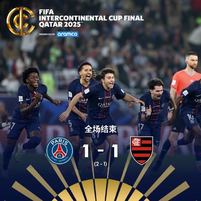 而点球大战大巴黎的俄罗斯替补门神福萨诺夫拯救了球队,他从第2轮到第5轮连续4轮扑出弗拉门戈的点球,最终大巴黎尽管4人中也有2人罚丢,但依然在点球大战2-1取胜,总比分3-2击败对手,首次夺得洲际杯冠军。