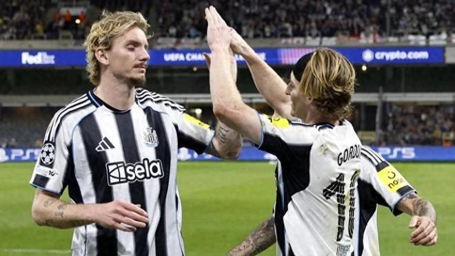 这场在比利时的土地上酣畅淋漓的大胜,不仅成为纽卡斯尔在欧冠赛场历史上最悬殊的胜利,更是他们自2004年11月欧联杯4-0击败索肖以来,时隔近21年再次在欧洲赛场取得如此大比分的完胜。比赛第17分钟,“喜鹊”便意外收获进球。伊兰加左路传中被后卫解围,皮球恰好落在桑德罗·托纳利脚下,这位意大利中场迎球怒射,皮球击中对方球员尼古拉斯·沃尔特马德腿部发生折射,门将谢尔彭毫无反应,目送皮球入网,纽卡1-0领先。这粒进球也凸显了沃尔特马德的“福将”属性——这名身价高达7500万欧元的前锋,仅用四次首发便打入三球。更值得一提的是,他成为纽卡队史上第四位在欧冠首发即破门的球员,此前达成这一成就的仅有阿斯普里拉、斯图尔特·皮尔斯和阿尔米隆。除了间接助攻首球,伊兰加在第41分钟又凭借一次灵巧突破制造点球。他在禁区内被莱森放倒,主裁判果断判罚点球。安东尼·戈登冷静操刀命中,将比分扩大为2-0,为客队奠定半场优势。易边再战,纽卡士气更盛。第62分钟,VAR介入判定莱森禁区内手球,纽卡再获点球。戈登再次站上十二码点,这次他选择低射球门右下角,一蹴而就,完成梅开二度。比赛尾声阶段,胜负已定,但纽卡仍未收手。第80分钟,替补登场的哈维·巴恩斯接到奥苏拉的精准直塞,快速反击单刀赴会,冷静推射破门,将比分锁定为4-0!从幸运开局到全面压制,再到替补奇兵锁定胜局,纽卡斯尔取得了一场完美的客场大胜。