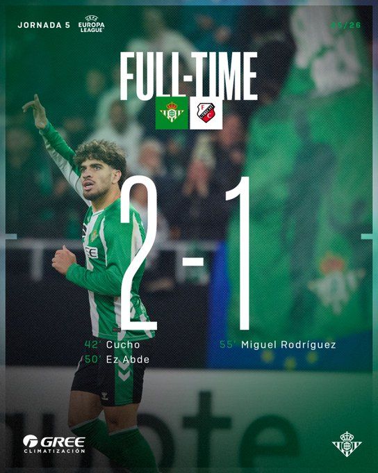 北京时间11月28日04:00,欧联杯联赛阶段第5轮,皇家贝蒂斯主场迎战乌德勒支。上半场,阿姆拉巴特踢到伊斯科,两人双双伤退!安东尼抢断助攻库乔破门!下半场,阿布德爆射破门;米格尔中线超级吊射破门!穆尔金进球被吹。最终,皇家贝蒂斯2-1击败乌德勒支,欧联杯5轮不败!其他赛事比分:欧联 波尔图 3-0 尼斯欧联 费耶诺德 1-3 凯尔特人欧联 阿斯顿维拉 2-1 年青人欧联 里尔 4-0 萨格勒布迪纳摩欧联 塞萨洛尼基 1-1 布兰欧联 比尔森胜利 0-0 弗赖堡欧联 费内巴切 1-1 费伦茨瓦罗斯欧联 卢多戈雷茨 3-2 塞尔塔欧联 博洛尼亚 4-1 萨尔茨堡欧联 贝尔格莱德红星 1-0 布加勒斯特星队欧联 亨克 2-1 巴塞尔欧联 帕纳辛纳科斯 2-1 格拉茨风暴欧联 特拉维夫马卡比 0-6 里昂欧联 前进之鹰 0-4 斯图加特欧联 格拉斯哥流浪者 1-1 布拉加欧协联 斯特拉斯堡 2-1 水晶宫
