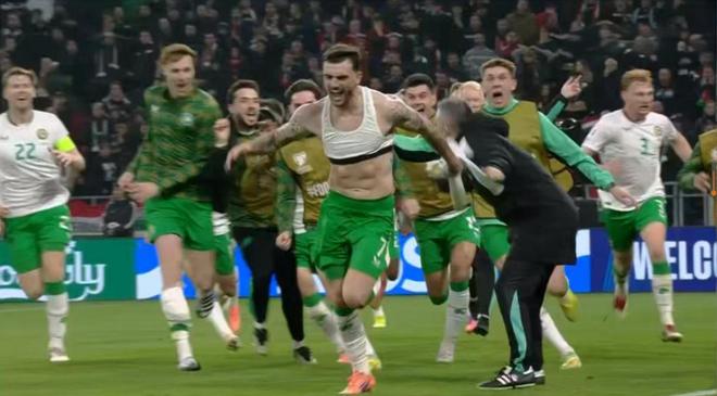 无论是面对主场球迷漫天嘘声的点球,还是反越位成功后的冷静挑射,亦或是甩开对方后卫鬼魅般杀出的抢点射门,都是其朴实无华、没有明显过人天赋、但又绝对算得上一名合格中锋技术特点的极致体现。哪怕他的名气和声望在爱尔兰阵中都远算不上头牌,但这一晚他的闪耀程度,甚至远胜对面的利物浦双雄,索博斯洛伊和科尔克兹。