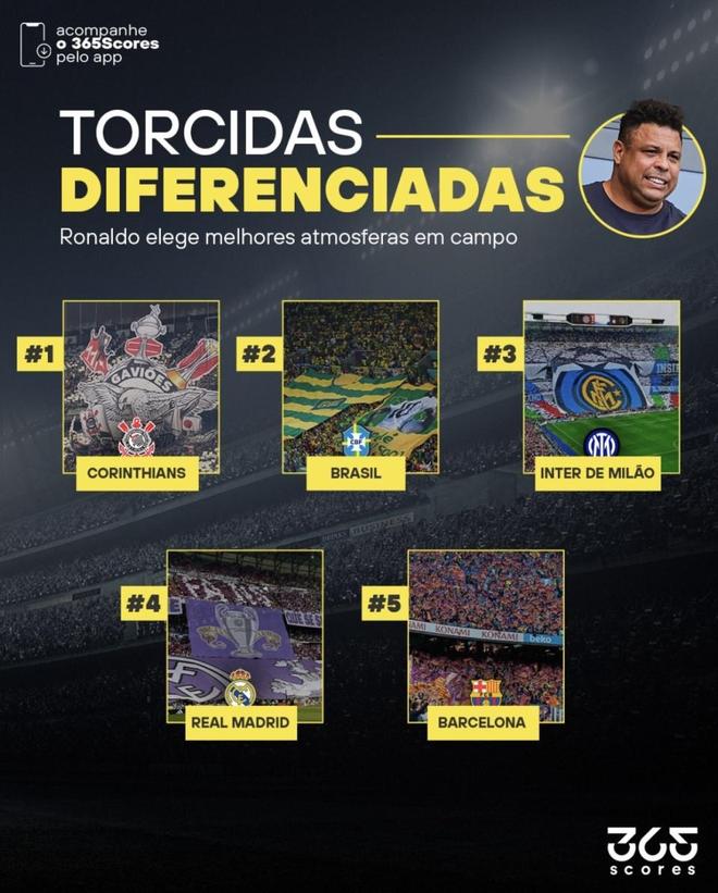 罗纳尔多近日在利雅得 Esports World Cup(EWC)期间接受场边采访,被问到“生涯中主场氛围最震撼的TOP5”,他依次点名:科林蒂安、巴西国家队、国际米兰、皇家马德里、巴塞罗那。因为他谈的是“自己亲身经历的氛围”,为避免口径混淆,本文按罗纳尔多效力时期来对应各队主场——巴萨对应诺坎普、科林蒂安对应帕卡恩布、国米对应梅阿查、皇马对应伯纳乌;国家队不设固定主场,以下仅呈现俱乐部部分的数据与对比。氛围最震撼的主场科林蒂安(Corinthians)所属联赛:巴甲球场名称:帕卡恩布球场(当年主场)容纳人数:约40,199人(座位)最近赛季上座率:不适用(科林蒂安近年来使用新化学竞技场;帕卡恩布已非其主场)罗纳尔多在该俱乐部效力赛季数:3个赛季(2009–2011)国际米兰(Inter)所属联赛:意甲球场名称:圣西罗/朱塞佩·梅阿查球场(当年主场)容纳人数:约75,817人最近赛季上座率(联赛):约72,838/场(2023/24)罗纳尔多在该俱乐部效力赛季数:5个赛季(1997–2002)。皇家马德里(Real Madrid)所属联赛:西甲球场名称:圣地亚哥·伯纳乌球场(当年主场)容纳人数:约80,000人级别(2001–2006年扩建至80,354座)最近赛季上座率(联赛):约72,692/场(2024/25)罗纳尔多在该俱乐部效力赛季数:5个赛季(2002/03–2006/07)巴塞罗那(FC Barcelona)所属联赛:西甲球场名称:诺坎普球场(当年主场;现已重建停用中)容纳人数:约99,354人(因90年代末全座席化而降至“接近99,000”)最近赛季上座率:不适用(巴萨近两季使用蒙锥克临时主场)罗纳尔多在该俱乐部效力赛季数:1个赛季(1996/97)评价总结以罗纳尔多效力年代的主场口径审视,圣西罗的高上座与密不透风的看台带来持续的声浪压迫,伯纳乌依靠超大体量与关键战浓度形成顶级观赛张力;帕卡恩布虽非巨型球场,但高密度站位与南美助威文化叠加,塑造出独特“热浪”与情绪回响;诺坎普的近十万容量则提供了难以复制的宏大场景。将容量、最近赛季上座率与罗纳尔多在各队的效力年限并置,可以理解他为何把南美的科林蒂安与意西豪门并列进榜——这份“氛围榜”既有数据支撑,也有他职业记忆里的情感权重。