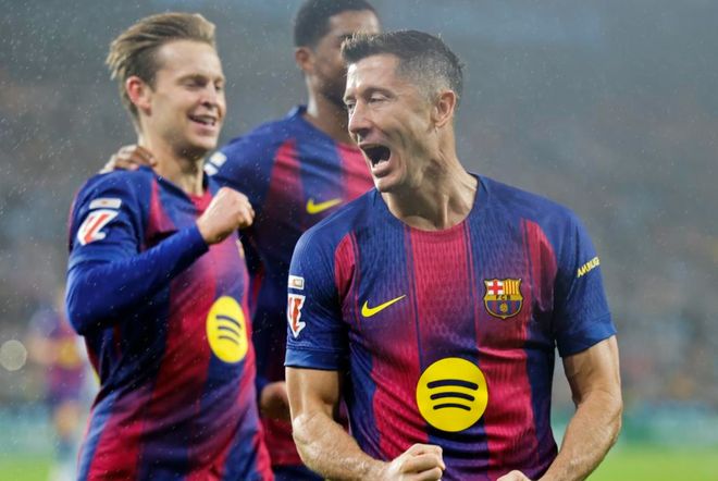 巴萨则征服了客场,以4-2击败了塞尔塔。巴萨的比赛因为弗里克的激进战术,总是那么刺激。这场比赛巴萨在第10分钟就取得了进球。莱万多夫斯基点射破门。但很快卡雷拉就帮助塞尔塔扳平比分。之后莱万多夫斯基再次进球。伊格莱西亚斯迅速扳平比分。半场临近结束亚马尔推射破门让巴萨再度领先。下半场莱万多夫斯基头球破门完成戴帽,把最终的比分定格为4-2。巴萨的防守还是那么差,幸好有足够犀利的进攻,才赢下这场比赛。
