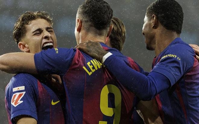 全场比赛,两队踢得大开大合,单单上半场就攻入了5粒进球。巴萨三叉戟全面爆发,拉什福德造两球,莱万上演帽子戏法,亚马尔劲射破门。而塞尔塔的两粒进球同样精彩,最终全场比赛结束,巴萨客场4:2战胜塞尔塔,将积分差距缩小到3分。从比赛开始,巴塞罗那便向塞尔塔的腹地发起猛攻,并且很快便见到了效果。第8分钟,费尔明远射击中阿隆索的手臂,裁判吹罚点球,莱万主罚一蹴而就,0:1!巴萨取得梦幻开局。一个回合后,拉什福德浪费单刀的机会,随即塞尔塔便通过中场强硬的逼抢,直接反越位成功,卡雷拉突入禁区推射远角破门,1:1!两队回同一起跑线。