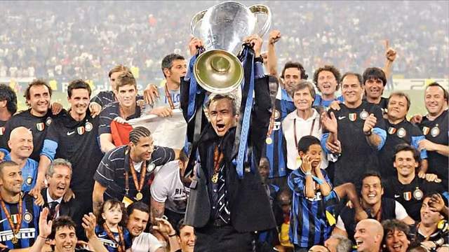 曼奇尼也算国米的功勋主帅,意甲力压尤文3连冠,只是欧冠有些拉胯,连续两个赛季1/8决赛出局。穆里尼奥执教国米的第一个赛季,意甲卫冕,欧冠1/8决赛出局,似乎也不比前任曼奇尼高明。改变出现在2009年夏天,国米把“联赛之王”瑞典中锋伊布送去巴萨,换来了正值当打之年的喀麦隆前锋埃托奥和4600万欧元现金。穆里尼奥签下了极具创造力的组织中场斯内德,前锋米利托,中场蒂亚戈·莫塔,后卫卢西奥等新援。2009-10赛季开启,国米意甲磕磕绊绊,最终仍以2分优势卫冕成功;意大利杯决赛1-0击败劲敌罗马夺冠;欧冠半决赛淘汰了卫冕冠军巴萨,决赛2-0击败德甲霸主拜仁,时隔45年再度举起大耳朵杯,意大利足坛第一支三冠王球队诞生!