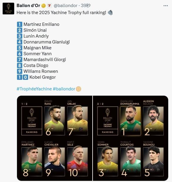 用的去年文案!金球奖发布雅辛奖2025排名:大马丁第一......