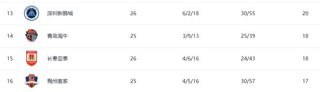 值得一提的是,青岛海牛、梅州客家少赛一场,两队将在10月4日进行的第24轮补赛里上演保级大战。一旦梅州客家主场告负的话,那么几乎将锁定一个降级名额。