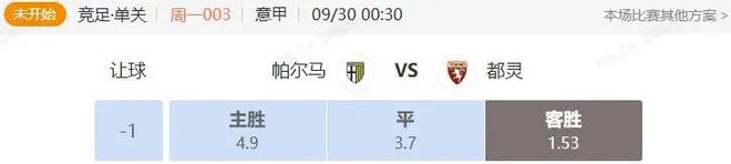 英超两场赛事解析,更多精彩方案可下载“网易红彩”App进行查阅!1.专家:麦香猪竞足 周一003 意甲 帕尔马VS都灵开赛时间:2025-09-30 00:30:00