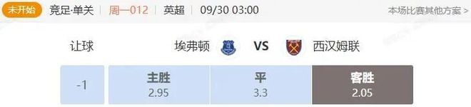 英超 埃弗顿VS西汉姆联开赛时间:2025-09-30 03:00:00