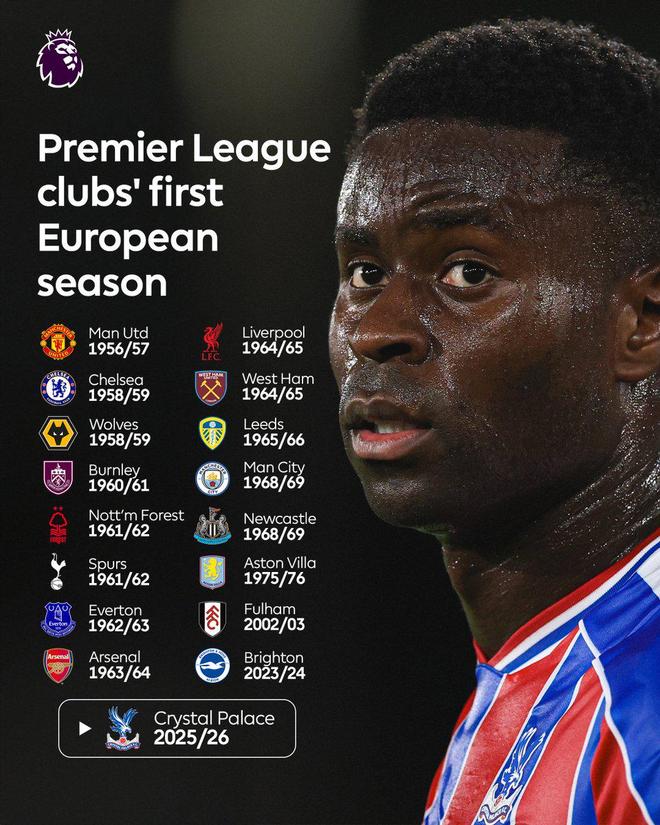 英超联赛中第17支参加欧战正赛的球队。其他16支参加欧战正赛的球队以及首个欧战赛季如下(按照先后顺序):1.曼联 1956/57赛季2.切尔西 1958/59赛季3.狼队 1958/59赛季4.伯恩利 1960/61赛季5.诺丁汉森林 1961/62赛季6.热刺 1961/62赛季7.埃弗顿 1962/63赛季8.阿森纳 1963/64赛季9.利物浦 1964/65赛季10.西汉姆联 1964/65赛季11.利兹联 1965/66赛季12.曼城 1968/69赛季13.纽卡斯尔联 1968/69赛季14.阿斯顿维拉 1975/76赛季15.富勒姆 2002/03赛季16.布莱顿 2023/24赛季