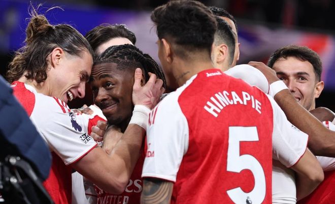 英超第12轮的一场比赛展开争夺,阿森纳在主场迎战热刺。阿森纳前11场联赛取得8胜2平1负的战绩,排名榜首。阿森纳能够取得如此出色的成绩,不仅仅因为进攻做得好,更在于顶级的防守。11场联赛只丢5球,阿森纳是英超丢球数最少的球队。不过,在上一场与桑德兰的比赛,阿森纳遭遇挫折,踢了个2-2,丢掉了2分。这次阿森纳面对的是实力不俗的热刺。结果,阿森纳大获全胜,全取3分。阿森纳排出433阵型。萨卡、梅里诺和特罗萨德的进攻三叉戟联袂出击。埃泽、马丁-苏比门迪和赖斯组成3中场。廷贝尔、萨利巴、因卡皮耶和卡拉菲奥里4后卫首发出战。戴维-拉亚担任首发门将。马丁内利、马杜埃凯和恩瓦内里坐在替补席待命。哲凯赖什和加布里埃尔因伤缺阵。比赛开始不久,赖斯就获得非常好的机会,他在禁区中路的凌空抽射被门将挡出。随后,梅里诺射门被挡了出去。第18分钟,萨卡任意球直接射门,踢高了。第32分钟,本坦库尔犯规被出示黄牌。4分钟后,阿森纳进球了!特罗萨德前插停球转身射门,球进了!第41分钟,阿森纳再次进球。埃泽在禁区内的低射破门。半场结束,阿森纳2-0领先热刺。下半场刚刚开始,阿森纳又进球了!又是埃泽的进球,他在禁区线上推射球门左下角,球进了!第54分钟,里沙立松超远距离吊门,皮球划出一道漂亮的弧线,钻入球门。热刺扳回一球。第64分钟,西蒙斯的远射被门将没收。8分钟后,萨卡远射被扑出。第76分钟,埃泽再进一球,完成帽子戏法!比赛彻底失去悬念。最终,阿森纳4-1击败热刺。阿森纳控球率57%,17次射门,8次射正,进了4球。而热刺只有可怜的3次射门,进了1球。27岁天才埃泽无疑是全场最佳,他6次射门,4次射正,进了3球,还有全场最高的3次成功过人。赢下这场比赛后,阿森纳总积分达到29分,领先切尔西6分,甩开曼城7分。