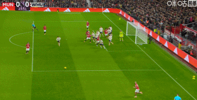 第58分钟,卡塞米罗打门被挡,达洛特得球补射入网!曼联1-0西汉姆联