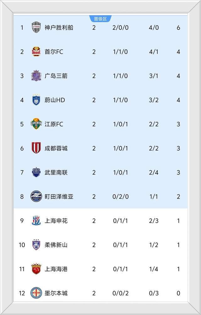 聚焦体坛资讯,关注亚冠赛场。新赛季得亚冠精英来第2轮比赛全面开打。前一个比赛日,率先出战的中超两强、上海海港和成都蓉城,都拿到不错的结果。海港客场逼平J联赛强队广岛三箭,拿到亚冠第1分;而成都蓉城更是创造历史,主场掀翻韩国劲旅,全取3分。第2个比赛日,最后出战的上海申花能否保证中超球队不败佳绩,值得关注。本赛季的亚冠精英赛首轮,三支出战的中超球队为了联赛考虑,不约而同地大面积轮换球员,从而直接导致3场输球,这还是中超亚冠赛场头一遭,引发球迷批评。第二轮,暂时没了中超任务的几支球队迎来证明自己的机会。海港和蓉城不负众望,顺利拿分,就看申花表现怎么样了。本场比赛,上海申花坐镇主场迎战韩国劲旅平蔚山HD。主场作战的申花,开局就向对手发球连续攻击,若不是阿苏埃5分钟内2次浪费必进球机会,申花将获得2-0的梦幻开局。上半场虽然两队球门前都有过风声鹤唳的危险,都侥幸逃脱,0-0战平;下半场开局,申花终于打破场上僵局,高天意送出助攻,阿苏埃将功补过扫射破门,帮助球队1-0领先;落后的蔚山HD开始大举反攻。比赛进行到第62分钟,卢德维格松禁区中路附近接球垫射破门,帮助蔚山HD队将比分扳为1-1。扳平比分的韩国劲旅士气大振,申花一时慌了神,要不是球门柱两次“救主”,主队已经在3分钟大崩盘。侥幸连续逃过危机的申花本来有“大难不死必有后福”的剧本,但阿苏埃无情挥霍。第73分钟,阿苏埃获得单刀球机会,一脚射门太正,被对方门将封堵,错失重新反超比分良机。最终经过90分钟激战,申花主场1-1打平对手,拿到本赛季亚冠首个1分。随着申花的一场平局,第二轮中超三支球队终于扬眉吐气了一把,1胜2平保持不败。另外一场焦点之战。由J联赛的神户胜利船队主场迎战澳超球队墨尔本城。主场作战的神户胜利船无疑是获胜热门,首轮他们客场3-0大胜中超卫冕冠军上海海港,而墨尔本城首轮也以失利而告终。这场比赛的重要性不言而喻,如果神户胜利船取得胜利,将会成为首支2连胜的球队并且送澳超劲旅两连败垫底。双方展开激烈争夺,神户胜利船占据主场优势,但久攻不下,就在大家认为会是一场平局时,第93分钟时,主队汰木康门前获得幸运球打门绝杀,最后一刻拿到价值连城的3分。而随着申花1-1、神户胜利船1-0绝杀,第二轮亚冠最新完整积分榜出炉。神户胜利船以2战全胜积6分跃居榜首,两连败的墨尔本城0分垫底。中超三支球队,成都蓉城积3分排名第6位,申花和海港各取1分,分列第9和第11名。