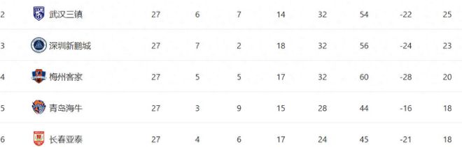 中超第27轮最后两场比赛中,大连英博与武汉三镇0-0战平,长春亚泰0-2不敌河南队。随着这两场比赛结束,中超保级形势大乱!也因此引来了球迷以及媒体的热议和关注。本赛季的中超联赛只剩下最后3轮了!虽然冠军之争进入白热化!但本文只讨论保级形势。随着中超第27轮结束。积分榜上排名第11位的河南队已经提前上岸了!他们的积分已经达到了32分,领先倒数第二的青岛海牛队14分。而从第12名的武汉三镇、第13名的深圳新鹏城队、第14名的梅州客家队以及深陷降级区的青岛海牛队和长春亚泰队,这5支球队都有降级的风险。值得一提的是武汉三镇队和长春亚泰队都曾经是中超联赛冠军。而长春亚泰队目前积分榜垫底。