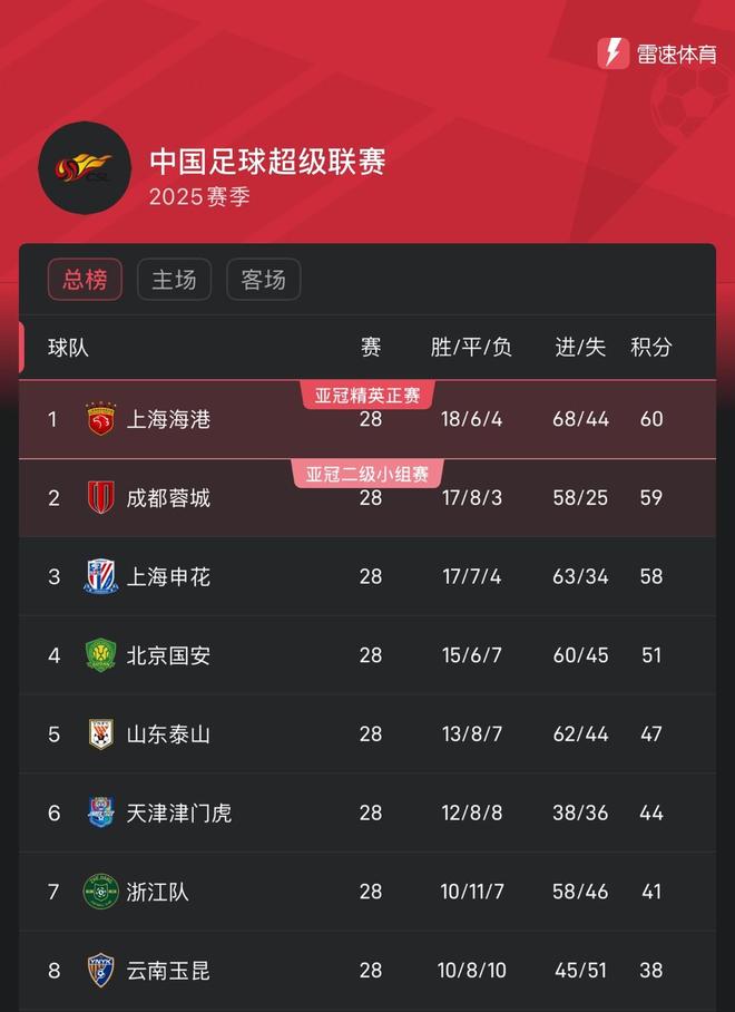 雷速体育10月26日讯 中超联赛今天结束了第28轮的争夺,本轮中超前四全部“翻车”,海港、成都、申花、国安本轮均未取胜,在还有2轮赛季结束的情况下,前三之间仅差2分,而国安彻底退出争冠行列。中超上半区积分榜 而最后2轮,深圳新鹏城有可能成为“争冠判官”,他们将在29轮客战申花,随后30轮主场战蓉城。中超争冠三队最后2轮赛程上海海港10月31日18:00 vs浙江队(主)11月22日 15:30 vs大连英博(客)上海申花10月31日20:00 vs深圳新鹏城(主)11月22日15:30 vs天津津门虎(客)成都蓉城10月31日19:35 vs河南队(主)11月22日 15:30 vs深圳新鹏城(客)