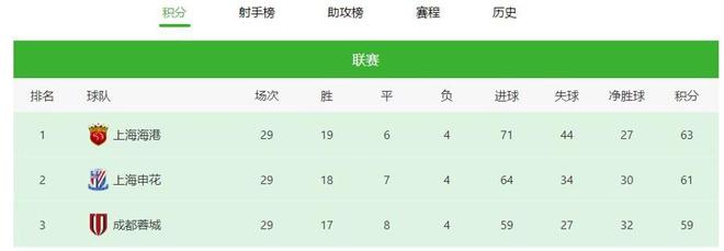 蓉城退出冠军竞争行列,海港、申花在最后一轮争夺奖杯。 上海海港在主场迎战浙江的比赛,主队完美诠释了众志成城、激情澎湃。上半场,浙江队后卫刘浩帆不慎将球打入自家球门。下半场,海港左边翼卫李帅送出助攻,王燊超后点凌空斩世界波再下一城,帮助球队扩大领先优势。之后,海港外援维塔尔的直接任意球破门锁定胜局。最终,上海海港以3比0战胜浙江。 随后进行的一场比赛,成都蓉城队主场以1比2不敌河南队,意外退出了争冠集团。上半场,成都蓉城队依靠严鼎皓的直接任意球破门打破僵局,但下半场河南队主导局势,先由钟义浩闪击破门,终场前何超超级世界波破门反超比分。这个赛季,蓉城被河南队第三次击败,就此无缘夺冠。