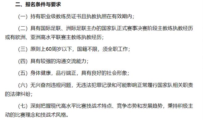 而根据这条报名条件,几乎排除了本土教练,毕竟本土教练几乎没有带队参加过洲际大赛,以及具有欧洲、亚洲高水平联赛,加上此前的足坛反腐,足协重新启用本土教练的可能性极小,但是现在看来,足协选帅迎来大反转……