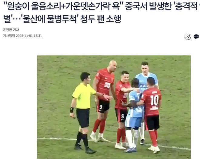 “在此之前,成都蓉城球迷在和蔚山HD的比赛中,向蔚山球员投掷水瓶,而导致成都蓉城被亚足联罚款3000美元。本赛季,中超联赛饱受球迷不文明行为的困扰,球迷不仅在线上形成口角,甚至会演变成线下的冲突,对中国足球文化的担忧日益加剧。目前,中国足球已经出现了各种问题,此时球迷也不断添乱,可见他们的文明意识和文化水平都落后于时代。”该媒体总结称。