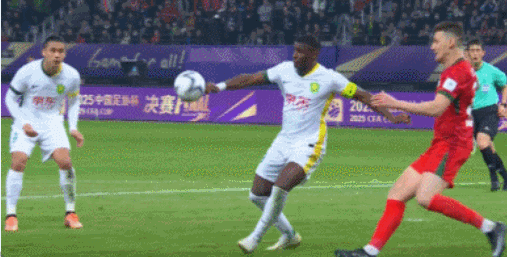 第45+4分钟,法比奥禁区内打门碰到了马亚的手上,VAR介入后,北京国安获得点球,随后法比奥主罚命中,上演梅开二度,比分2-0再下一城。